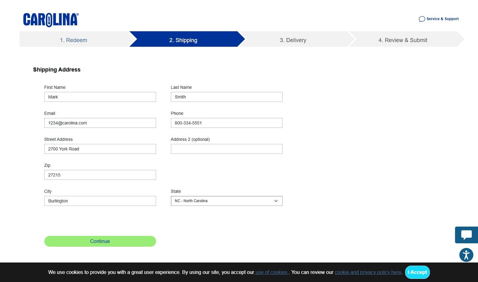The EASIEST and QUICKEST way to redeem you Voucher and schedule your delivery, Click Here:Carolina Biological Supply Have your control number/redemption code ready and the address where you want us to ship.